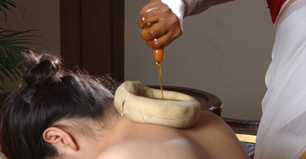 Administration of medicated oil through the nose, cleanses accumulated Kapha toxins from the head and neck region. This treatment is usually given from 7-30 days based on the medical condition of the patient.